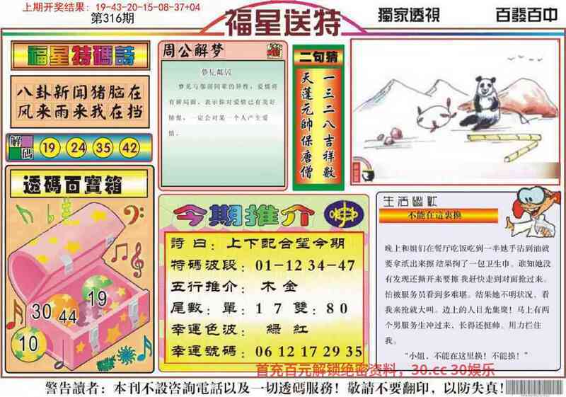 314期:绝杀5码【06.11.19.24.49】开:羊23